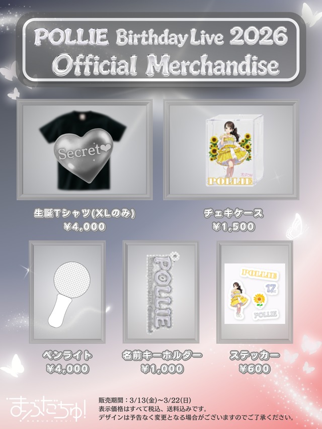 4/19 POLLIE 生誕祭での当日手渡しのみとなります。 後日の郵送対応はいたしかねますので、ご了承ください。